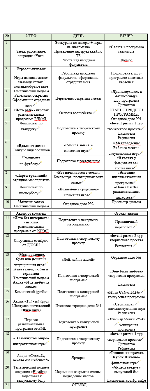 – Подготовка эмоционального состояния ребенка для окончания смены;