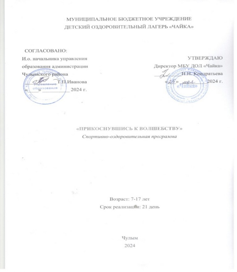 Программа деятельности муниципального бюджетного учреждения детского оздоровительного лагеря «Чайка» «Прикоснувшись к волшебству» |