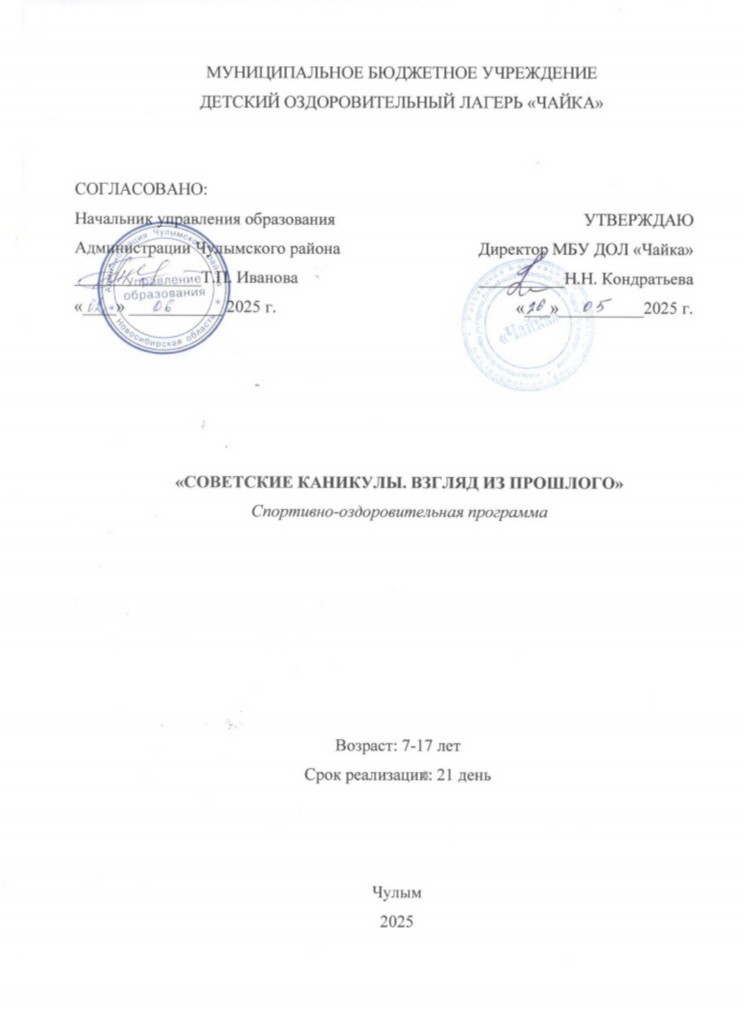 Программа деятельности детского оздоровительного лагеря «Чайка» «Советские Каникулы. Взгляд из Прошлого» |