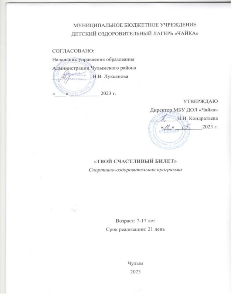 - Постановление администрации Чулымского района от 09.02.2023 г № 98 «Об открытии и приёмке МБУ ДОЛ «Чайка» Чулымского района»;